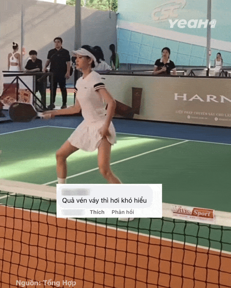 “Nói chung là Pickleball rất vui và mình thích chơi. Cái váy là do quần bảo hộ bên trong, chạy nhảy một hồi nó nhíu lên, em sợ nó không an toàn nên em hay có thói quen nắm lại vì sợ đang đánh sẽ tốc váy.