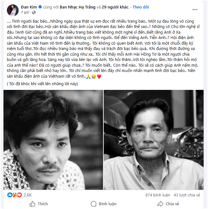 Nữ ca sĩ Đan Kim chia sẻ nghẹn ngào và trách móc khi đám ta:ng lại vắng bóng nghệ sĩ, giận thiệt sự’
