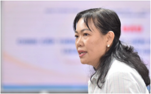 Phó Chủ tịch UBND xã Hiệp Phước Nguyễn Thị Hạnh tại buổi họp báo. Ảnh Dân trí